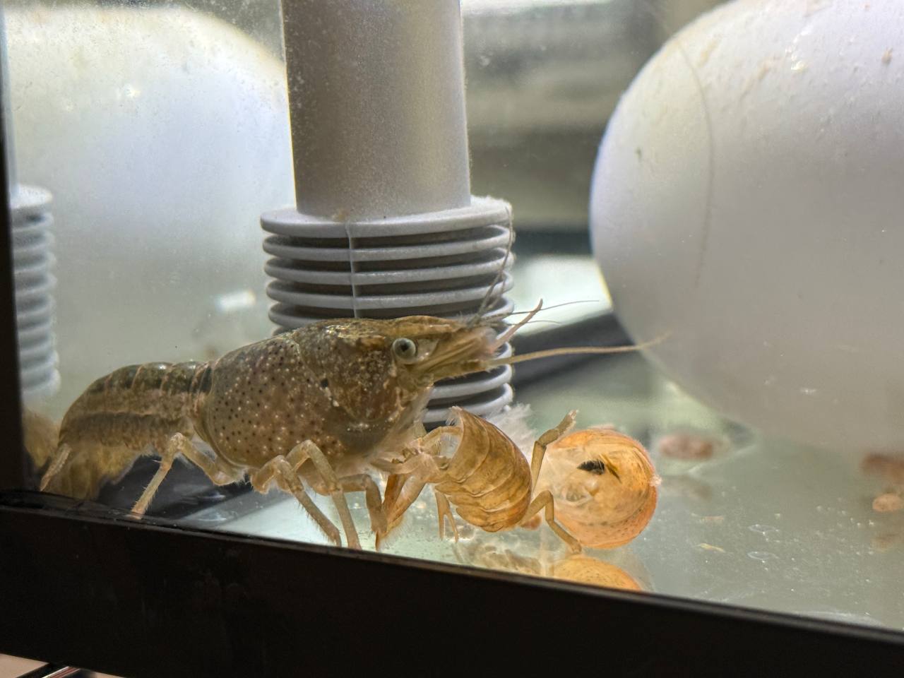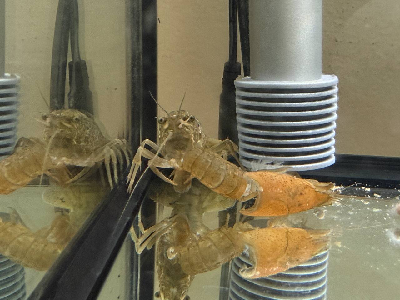 Crayfish breathe through gills and absorb chemicals directly from water. Poor water quality = slow poisoning. Key metrics: pH (6.5-8.0 optimal), ammonia (<0.02 ppm ideal),temperature (68-76ยฐF stable range). Ammonia spikes from waste buildup can kill quickly. That's why we monitor obsessively, siphon debris, and adjust feeding based on waste levels. Water chemistry is life-or-death for aquatic creatures.