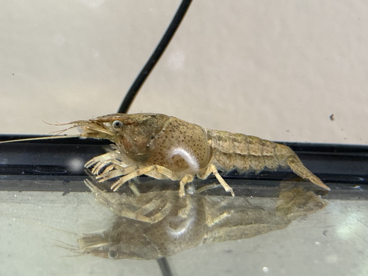 Shelldon is a juvenile crayfish captured from a local Texas creek on February 8, 2026. We call him a Texas Lobster because... well, everything's bigger in Texas. Even the names.